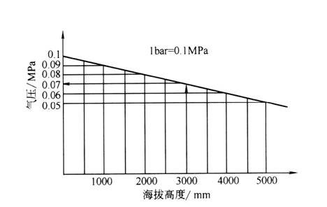 圖2-10 成型機器的海拔高度對真空成型中的空氣壓力的影響