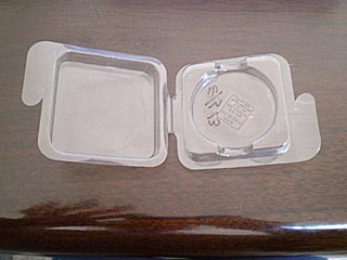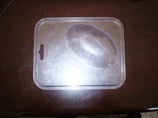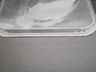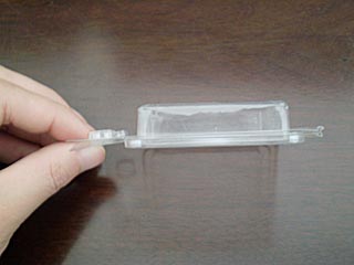 單對折槽呈園弧狀 對折后的雙泡殼,注意該泡殼是用交錯的搭扣將兩面扣在一起。